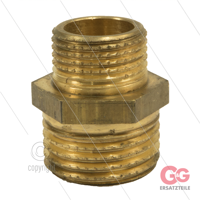 Doppelnippel reduziert - messing - 1/4" AG x 1/2" AG