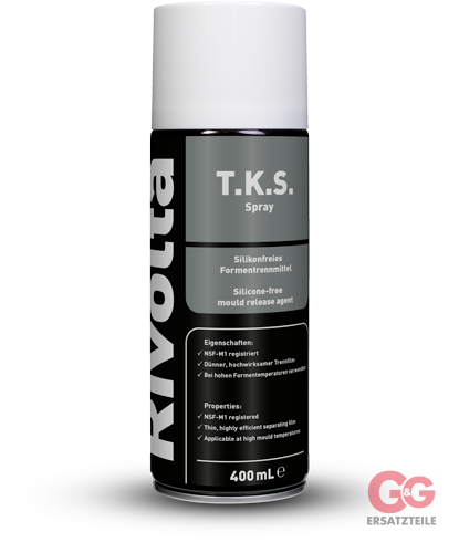Rivolta T.K.S. Spray ist ein Hochleistungstrennmittel, welches ein formenschonendes leichtes Entformen von thermoplastischen Kunststoffspritzgussteilen und die Minimierung von Fließlinien ermöglicht. Durch störungsfreies schnelles Entformen werden kürzere Taktzeiten, weniger Ausschuss und längere Formenstandzeiten erreicht. Wirtschaftlich durch langanhaltende Trennwirkung. T.K.S. Spray erfüllt die hohen Hygieneanforderungen für Kunststoffspritzgussteile für die Anwendung in der Lebensmittel-, Pharma- und Futtermittelindustrie.