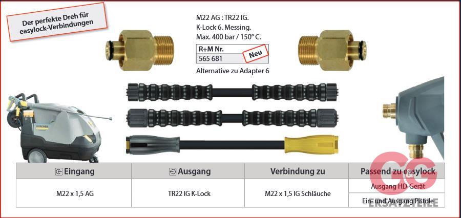 HOSE ADAPTER M22X1,5M/K-LOCK F BRASS