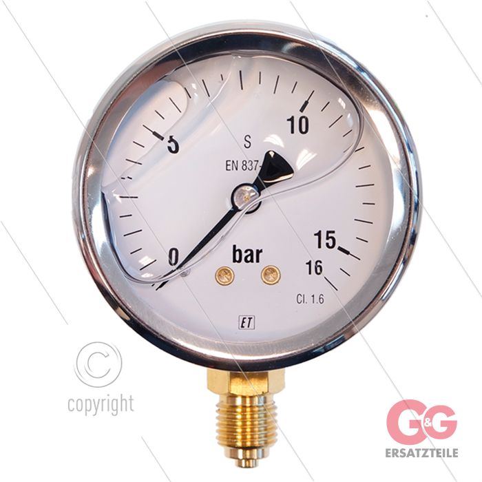 Manometer 0-16 Bar - 1/4" AG - Eingang unten - Ø63mm
