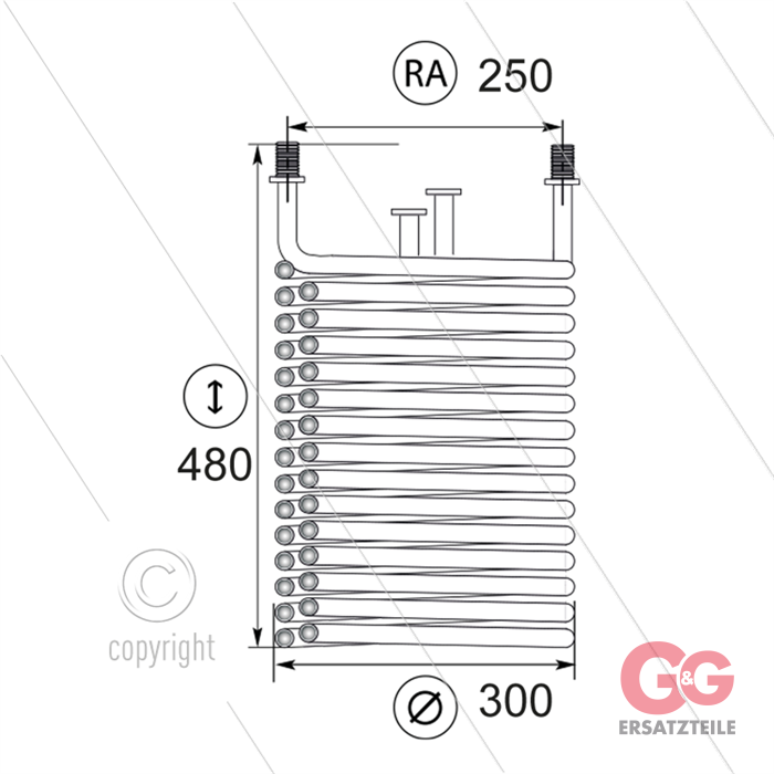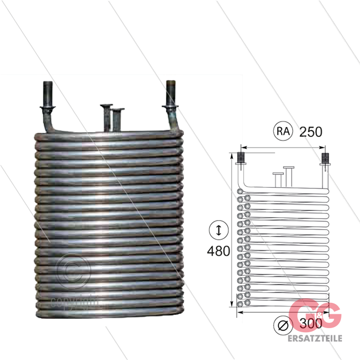 Heizschlange Portotechnica - Abstand der Anschlüsse: 250mm -